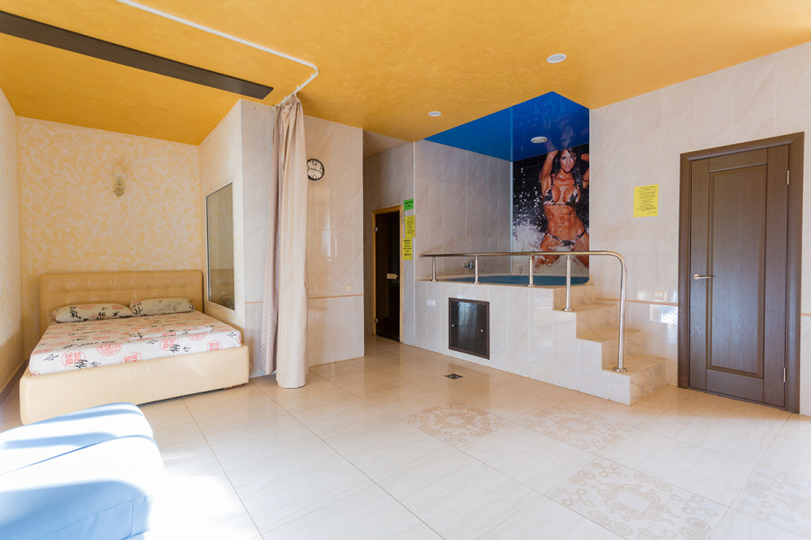 Номер VIP с сауной, джакузи, комнатой отдыха. Бронирование от 2 часов.